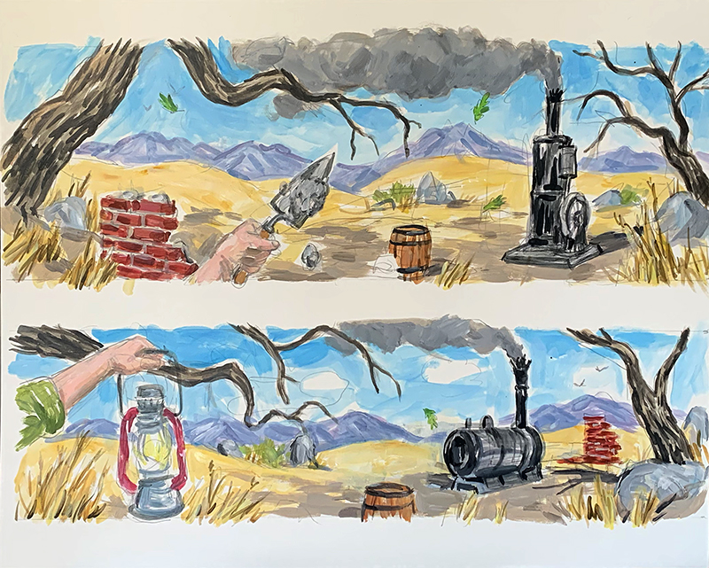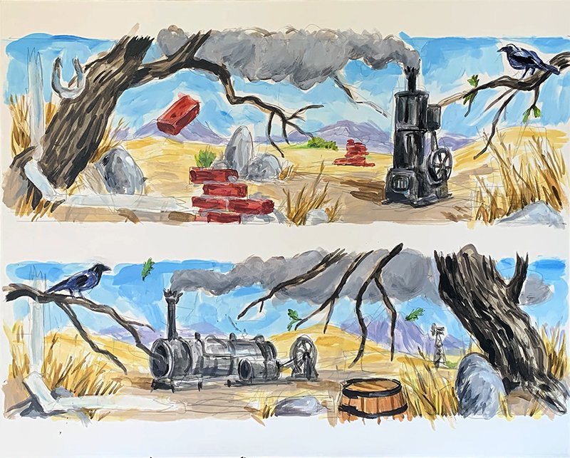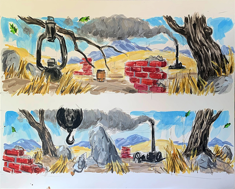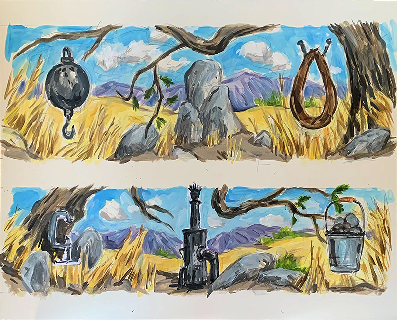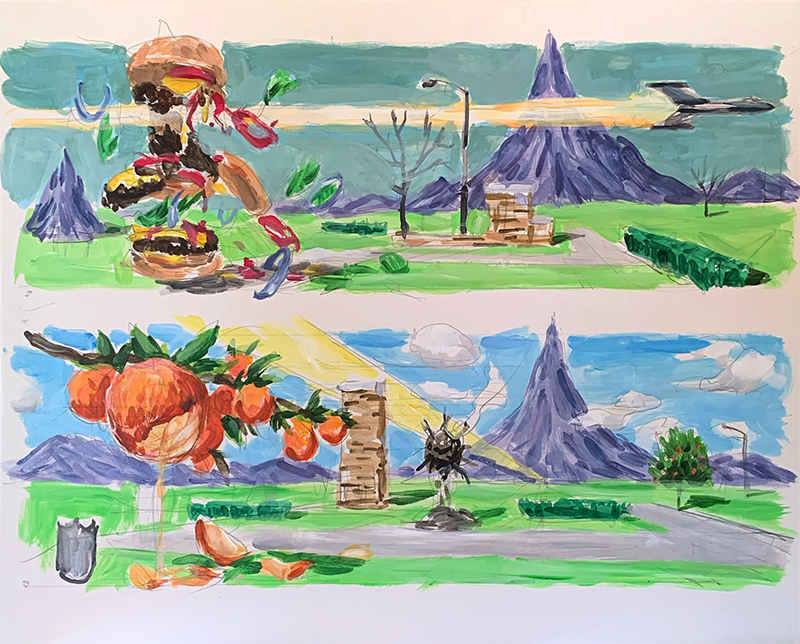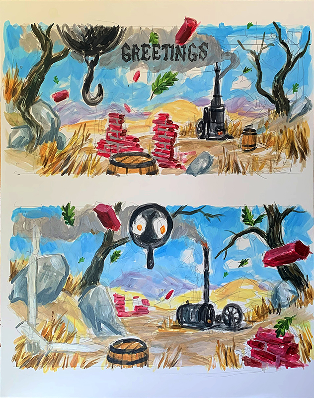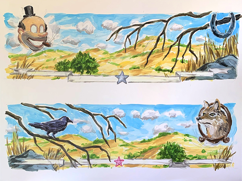 Untitled, 2023, acrylic on illus. board, 15" x 20" |