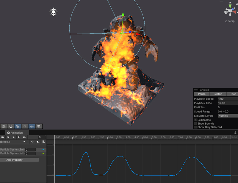 This might be the first time I've created an animation in Unity to keyframe the particle emmiters, in this case emmision rate and velocity