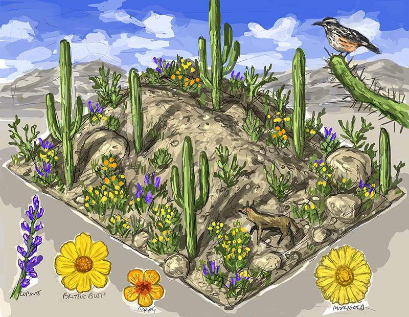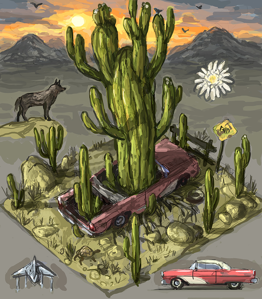 Sonoran desert + jaguar (I was astounded to learn there are actual jaguars in southern Arizona!)