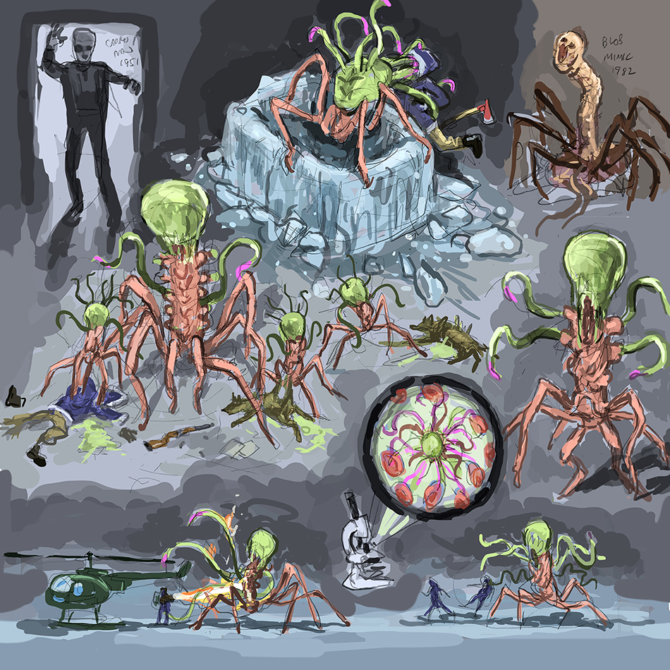 Thing fanart: tried to come up with a slighly different version, still does mimic/parasite but sheds host to become alien form