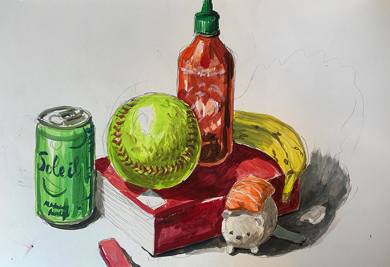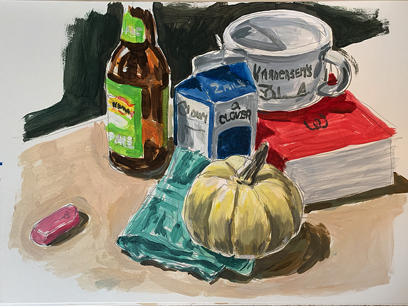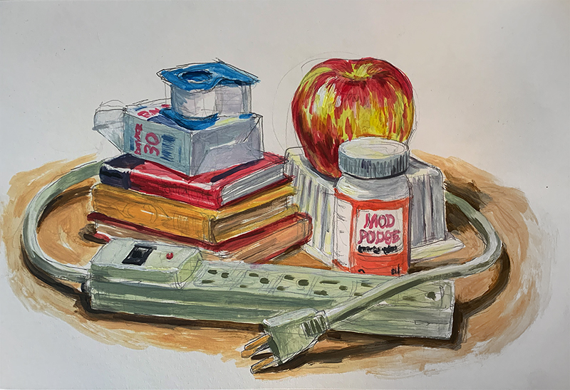 Still Life Studies, 2022, pencil and acrylic on illustration bd., 15" x 20"